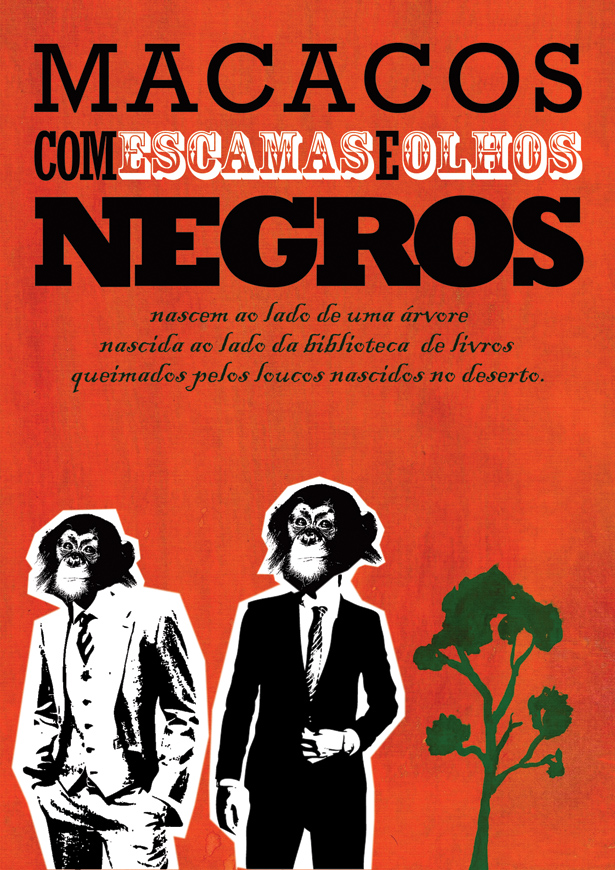Macacos com escamas e olhos negros nascem ao lado de uma árvore nascida ao lado da biblioteca de livros queimados pelos loucos nascidos no deserto.